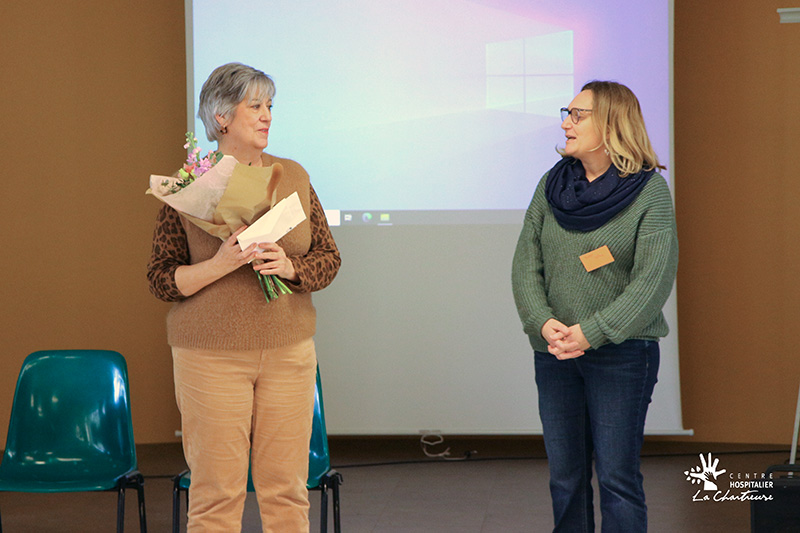 L’introduction de la journée a été assurée par Anne TAILLARD, directrice des ressources humaines, qui a rappelé qu’il s’agissait de la troisième édition et a exprimé le souhait de voir cette rencontre annuelle perdurer. Elle a salué l’arrivée de nouvelles et nouveaux psychologues au sein de l’établissement et relevé la richesse d’un programme particulièrement dense. À cette occasion, les psychologues lui ont remis un bouquet de fleurs, en lien avec son départ prochain à la retraite. La directrice du CH La Chartreuse, Emmanuelle JUAN, est quant à elle passée au cours de la journée pour partager un moment convivial autour d’un café.