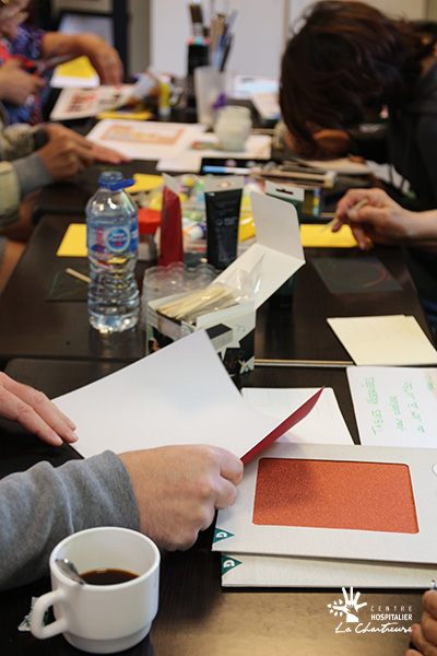 Atelier de création de cartes postales à la cafétéria du CH La Chartreuse : un moment d’expression et de partage
