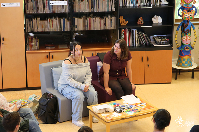 À l’occasion des Semaines d’information sur la santé mentale (SISM) qui débutent le 6 octobre 2025, le CH La Chartreuse organise plusieurs événements dont trois Caf&doc’ consacrés à des thématiques de santé mentale. Le Caf&doc’ du 1er octobre a réuni Jil DESPOIS, éducatrice spécialisée, et Ambre LABONDE, psychologue, pour présenter la Consultation Jeunes Consommateurs (CJC) mobile, un dispositif innovant de la SEDAP destiné à accompagner les jeunes dans leur consommation, notamment en cas d’addictions.