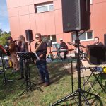 Après un passage au sein des unités Camille Claudel et Cassiopée, le groupe s’est ensuite installé en extérieur, afin qu’un maximum de personnes puisse bénéficier du concert.
