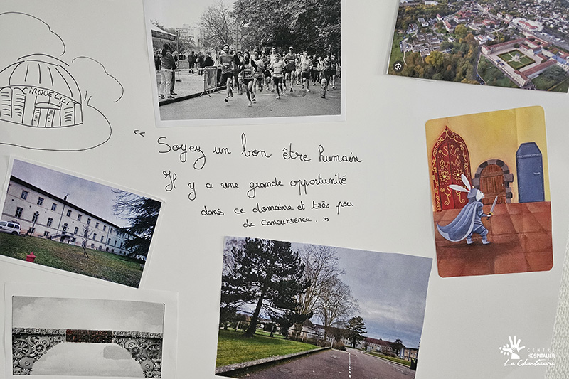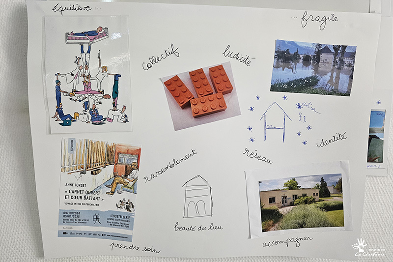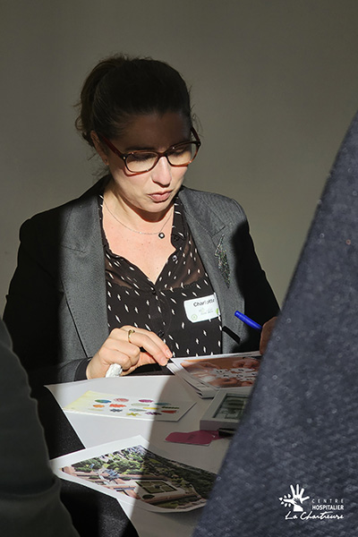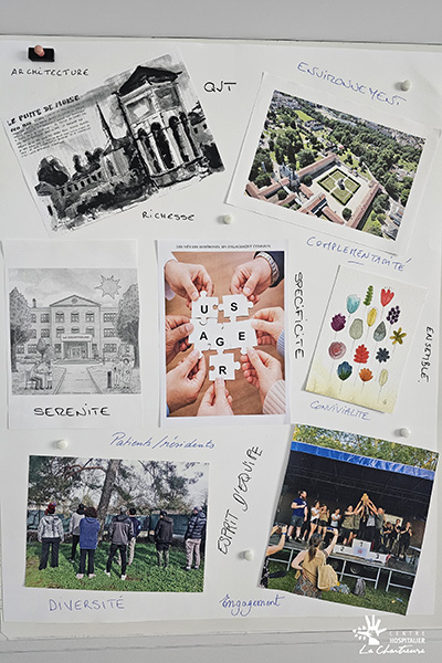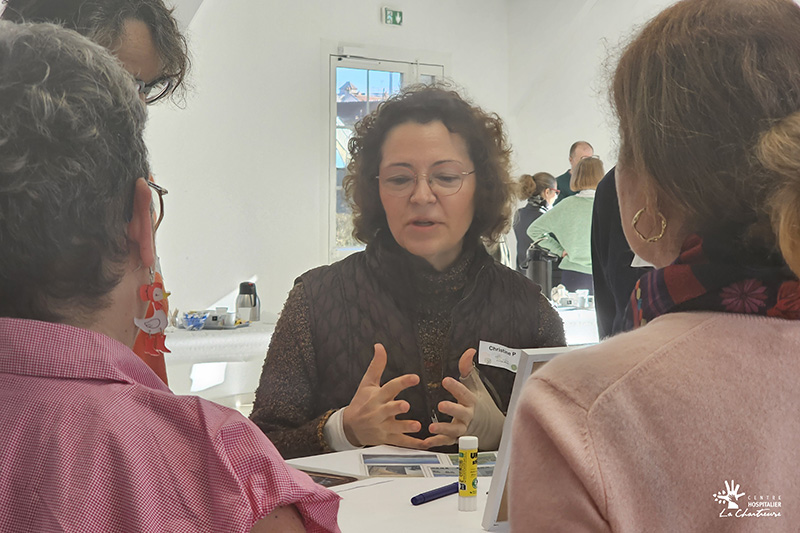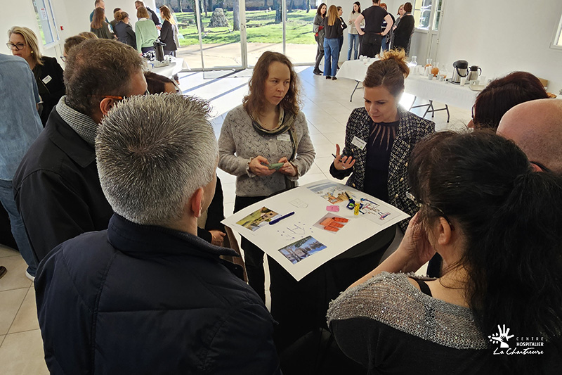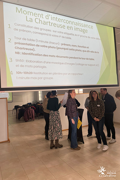 La matinée a débuté par un temps d’interconnaissance intitulé « La Chartreuse en images ». À partir de photographies et d’une mosaïque collective, les participants ont partagé leur perception de l’établissement et échangé autour de leurs représentations du CH La Chartreuse.