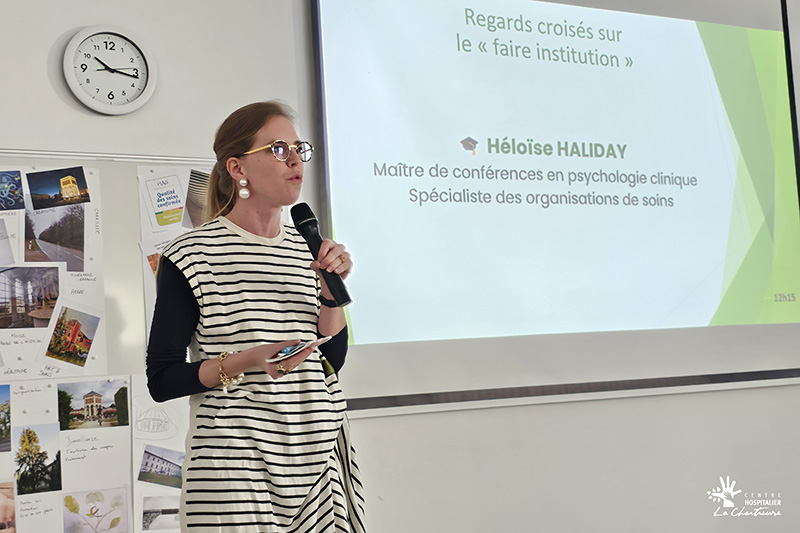 Une intervention d’Héloïse Haliday, maîtresse de conférences en psychologie clinique et psychopathologie, spécialiste des organisations de soins en santé mentale, a ensuite apporté un éclairage extérieur sur les dynamiques institutionnelles.