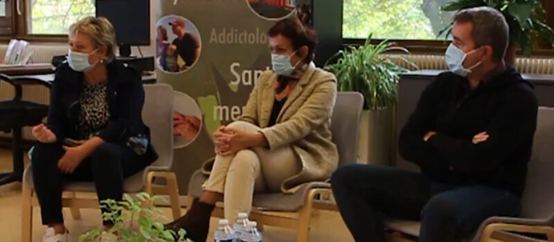 le Dr Muriel ROY, cheffe du Pôle Intra Hospitalier et psychiatre, Dr Radu MOT, psychiatre et Florence VEAULIN, cadre supérieur de santé.