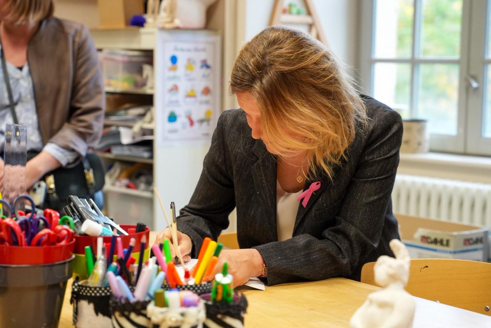 Enfin, dans les unités du pôle de Psychiatrie de l’Enfant et de l’Adolescent (Unité Père-Mère-Bébé, Unité de soin Petits Pas et Hôpital de jour Le Prisme), la Présidente a découvert la richesse des approches proposées pour les plus jeunes et leurs familles. Elle a échangé avec une ergothérapeute et un musicothérapeute, découvrant ainsi les différentes médiations sensorielles, corporelles et artistiques mises en œuvre pour soutenir le développement, la communication et le lien parent-enfant. Ces échanges ont permis d’illustrer la diversité des approches proposées par le CH La Chartreuse, où la créativité, la pluridisciplinarité et la bienveillance occupent une place centrale.