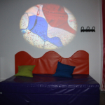 • fauteuil releveur pour observer les projections de disques liquide (huile) ou à thèmes (aquatique, forestier, animaux,…) sur le mur (stimulation et apaisement, imaginaire),