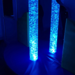 • colonne à bulles, ou non, dont les couleurs sont modifiées par un clavier interactif (visuel, sonore, vibratoire),